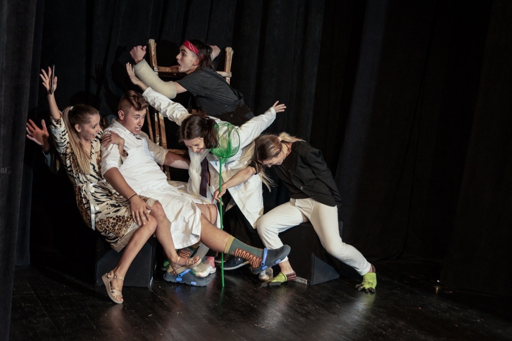 Постановката "Животни" ще бъде играна за първи път в "Театро" в София на 26 февруари от 19,30 ч. Студенти от класа на Теди Москов се събират около идеята на режисьора Ивомир Игнатов-Кени и заедно създават абсурдната комедия за това как да летим с разперени копита, научи ДУМА от Татяна Павлова от "Артвент". Действието се развива в провинциална психиатрична клиника. За трима пациенти, всеки от които има специфичен проблем, се грижат лекар и медицинска сестра. Денят започва с провеждане на арт терапия. Неволен участник в нея става и майстор бояджия. Лекари и пациенти поемат заедно на приказно пътешествие с подръчни материали. В шеметното препускане във фантастичната история всеки претърпява промяна. Когато се връщат в реалността, се оказва, че експериментът е помогнал на всички да се справят с проблемите си.