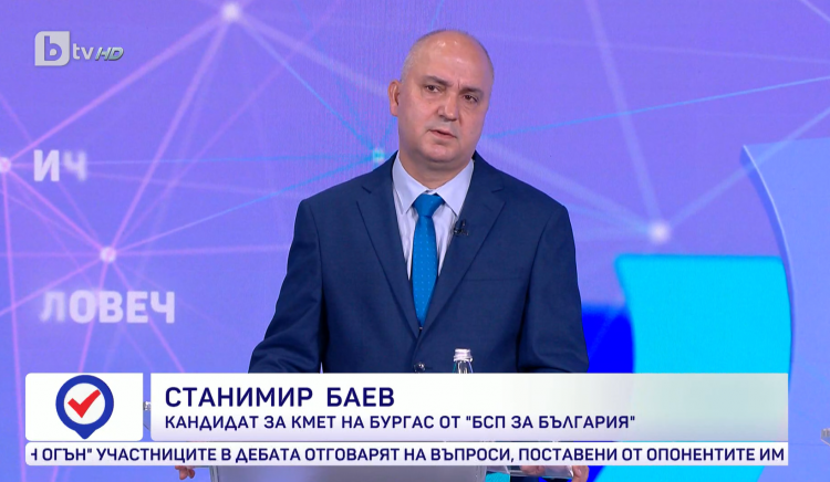 „Една от моите цели е процентът на гласуващите в Бургас да нарасне, така че по-голямата част от бургазлиите да изберат своя кандидат и да може да започне разграждането на модела на ГЕРБ в града.” Това заяви кандидатът на „БСП за България” за кмет на Бургас Станимир Баев в предизборен дебат по bTV.