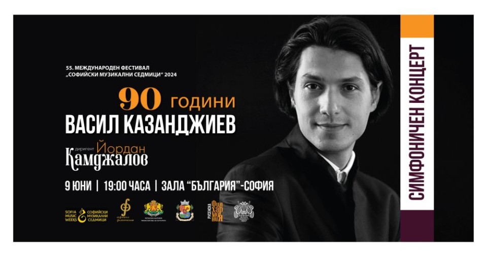 На голямата сцена в зала "България" от 19 ч. ще си партнират Русенската филхармония с маестро Йордан Камджалов и виртуозната пианистка Надежда Цанова с програма от творби на маестро Васил Казанджиев. Концертът е под наслов "90 години Васил Казанджиев", учител на най-талантливите музиканти от България. Програмата ще представи една от ранните му творби и едно от най-новите му произведения - Празнична музика "Псалми и ритуали", написана през 1972 г. и посветена на 10-годишнината на Камерния ансамбъл "Софийски солисти", както и Концерт за пиано и струнен оркестър "Виртуозни движения" от 2022 г., чиято премиера се състоя през май 2023 г., посветен на пианистката Надежда Цанова.
