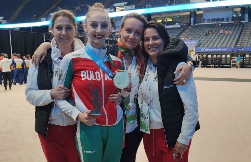 Така до момента на Световните игри в САЩ България има три медала - злато и сребро на Боряна Калейн и бронз на смесената двойка по аеробика Ана-Мария Стоилова и Антонио Папазов.