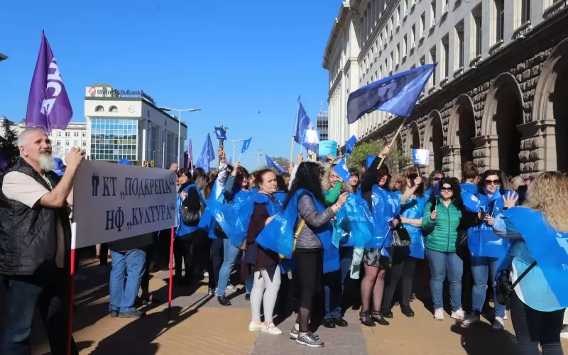 Работещи в различни структури на държавната администрация се събраха на протест пред сградата на правителството, където в този час започва заседание.