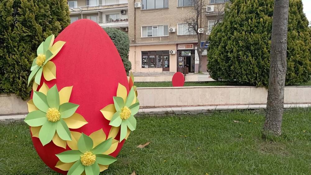 Деца от Чирпан украсиха с великденски акценти площадното пространство пред общината. Инициативата e част от проявите за отбелязване на Възкресение Христово от местната администрация.