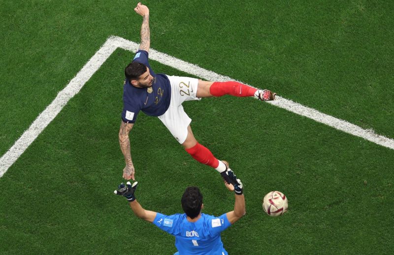 Франция се класира за втори пореден път на финал на Мондиал. В Катар "петлите" победиха Мароко с 2:0 и ще имат възможност да защитят титлата си от преди 4 години в Русия. Тео Ернандес (5) и резервата Коло Муани (79) донесоха успеха за тима на Дидие Дешан. "Атласките лъвове" се представиха достойно и също имаха своите възможности в двубоя, а в събота ще спорят в мача за 3-то място срещу Хърватия. В големия мач за титлата Франция ще играе с Аржентина - Лео Меси и компания удариха Хърватия в другия 1/2-финал.Световните шампиони поведоха още при първата опасност в срещата. Рафаел Варан изведе отдясно Гризман, който намери Мбапе. Изстрелът на нападателя беше блокиран, но топката достигна до Тео Ернандес, който отблизо вкара с атрактивен удар. Попадението падна след точно 4 минути и 39 секунди след първия съдийски сигнал и така стана най-бързият гол на полуфинал на Световно първенство от този на Вава в срещата между Бразилия и Франция през 1958 година.