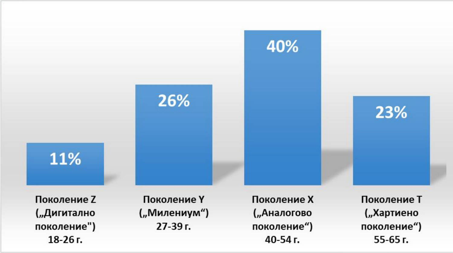 Поколението Z работи, за да се усъвършенства и забавлява, изисква високо възнаграждение, работа в реномирана фирма със съвременни технологии. Очертаните поколения са Z (18-26 години), Y (27-36 години), Х (40-54 години) и Т (55-65 години).