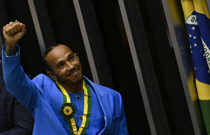 Облечен в син костюм, Хамилтън получи сертификат и медал в зелено и жълто – цветовете на бразилския флаг, от говорителя на долната камара на Конгреса Артур Лира. „Седемкратният шампион във Формула 1 Хамилтън – британец по рождение, но бразилец по сърце“, обяви Лира под бурните аплодисменти на присъстващите.
