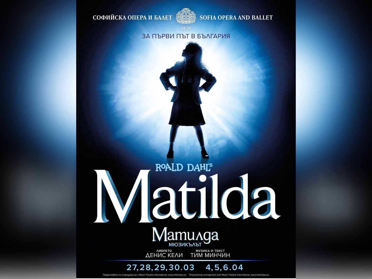 Мюзикълът "Матилда", който се поставя за първи път в България, ще има премиера на 27 март в Софийската опера и балет. Музиката и текстът са на Тим Минчин, либретото е на Денис Кели, а историята е на прочутия писател на детска литература Роалд Дал. Неговата "Матилда" излиза през 1988 г. и се превръща в един от най-популярните детски романи в света. Мюзикълът е спечелил 47 международни награди и продължава да вълнува зрители от всички възрасти по света.