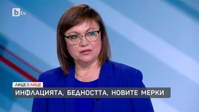 Много от представените тези дни антикризисни мерки БСП е предложила още в края на април. Това обяви пред бТВ лидерът на БСП и министър на икономиката Корнелия Нинова. Тя даде пример с поемането на 80% от цената на тока от държавата за промишлеността, да се компенсира увеличението на цената на газа и отлагане на забраната за внос на петрол от Русия или налагане на вето върху тази санкция.