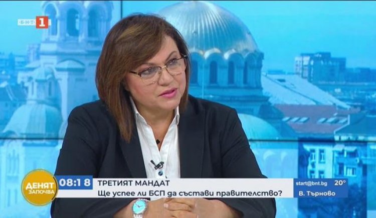 Лидерът на БСП Корнелия Нинова смята, че има шансове за подкрепа на правителство на третия мандат. Тази сутрин пред БНТ, малко преди да получи мандата то президента, тя коментира, че е имала разговор и със самия Слави Трифонов като лидер на най-голямата парламентарна формация. Не сподели какво точно са си казали, но няколко пъти подчерта, че неговото мнение е много важно, защото „Има такъв народ“ са първа политическа сила.