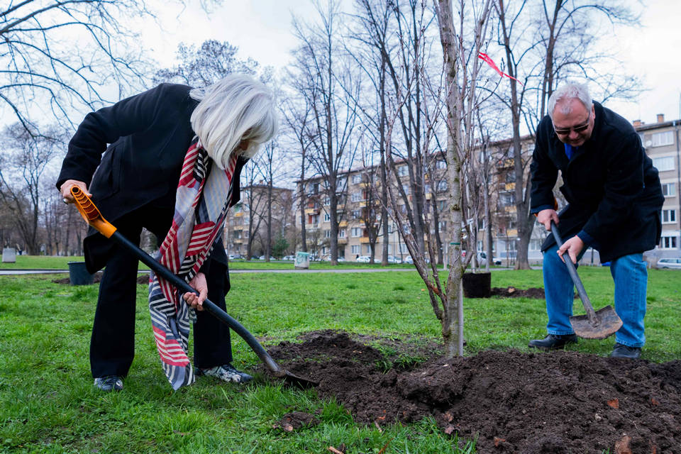А в слънчевия съботен ден дойде ред на полската режисьорка Малгожата Шумовска и на талантливата финландска актриса Алма Пьойсти да засадят своите японски вишни. Всяка от дамите отправи пожелания за чуден растеж на фиданките, а Алма бе очарована от факта, че вече споделя рождения си ден със своето лично дръвче в София.