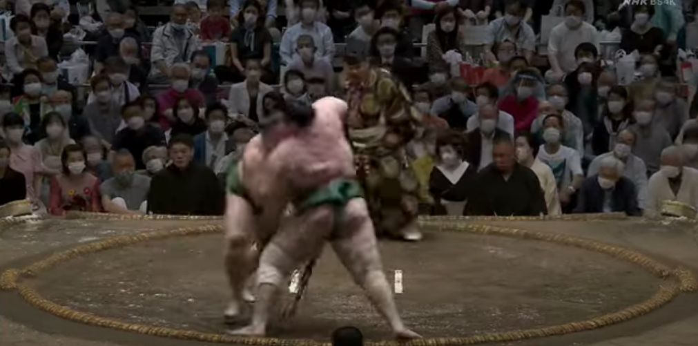 Даниел Иванов - Аоияма претърпя първа загуба на Майския турнир "Нацо Башо" в Токио. Българският "маегашира-11" отстъпи на японския "маегашира-12" Садануми, след като бе избутан от дохиото с хватката "ошидаши". Той претърпя 8-а загуба след 10 победи срещу японеца, но двамата разделят първото място с актив 6-1, следвани от 8 сумисти с по 5 победи и 2 загуби.