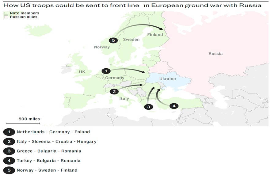 В случай на война в Европа американски войски ще слязат на едно от петте европейски пристанища и ще бъдат изпратени към Русия по предварително планирани маршрути. Някои от маршрутите минават през Хърватия, Гърция и България, което означава, че при война тези страни няма да бъдат пощадени.
