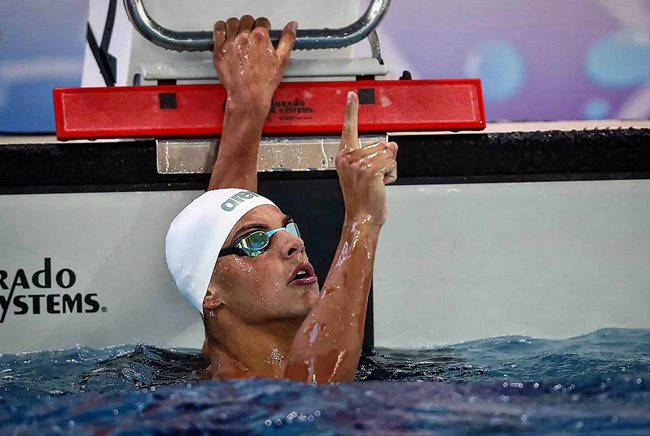 Петър Мицин постави нов национален рекорд и влезе във финала на 400 м свободен стил със седмо време на Световното първенство по плуване в малък басейн в Будапеща. 19-годишният състезател е първият българин с под 3:40 мин. в дисциплината, като даде четвърто време в своята серия - 3:38,94 мин. С най-добро време (3:37,22 мин.) за снощния финал се класира Илайджа Уинингтън (Авл).