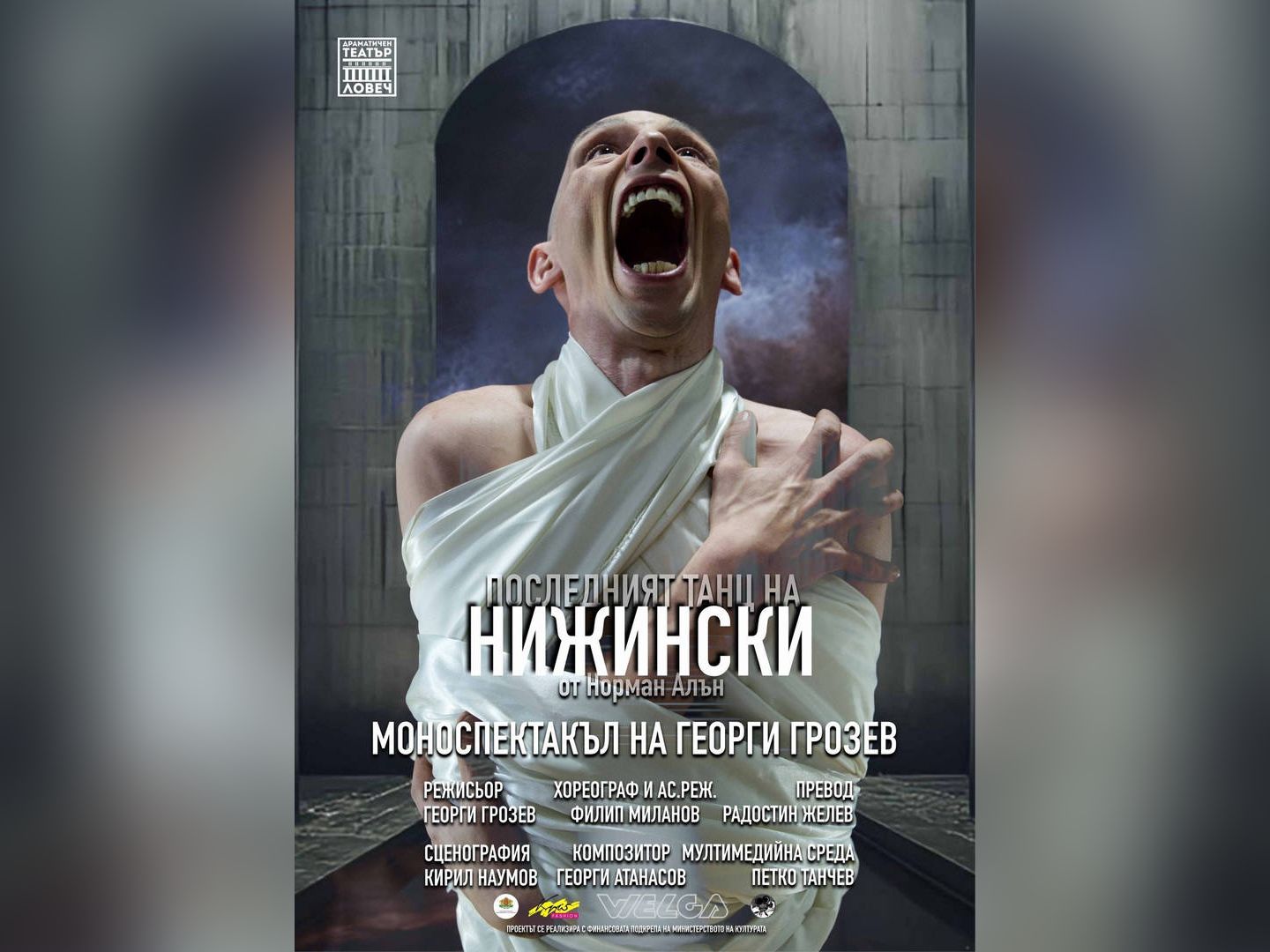 Сблъсъкът на творческия гений на един балетист със свръхматериалния свят на Европа в навечерието на Първата световна война - това е в центъра на "Последният танц на Нижински" от Н. Алън, моноспектакъл на актьора Георги Грозев в Ловешкия театър "Борис Луканов". Премиерата е на 31 март от 18 ч. на сцената на Ловчанското читалище "Наука-1870 г." Художествена кардиограма на възходите и паденията на безспорния гений Вацлав Нижински (12 март 1889 г., Киев - 8 април 1950 г., Лондон), за когото не съществували нито граници, нито гравитация. "Последният танц на Нижински" е многолик, мултимедиен, "жив" спектакъл, вдъхновен от образци като "Следобедът на един фавън" на Клод Дебюси, от сценографиите на Гордън Крейг и ранните филми на Луис Бунюел. Режисьор Георги Грозев, превод Радостин Желев, сценограф Кирил Наумов, хореограф и асистент-режисьор Филип Миланов, музика Георги Атанасов, визуална среда Петко Танчев, фотограф и плакат Изабела Манолова. Проектът е реализиран с финансовата подкрепа на Министерството на културата.
