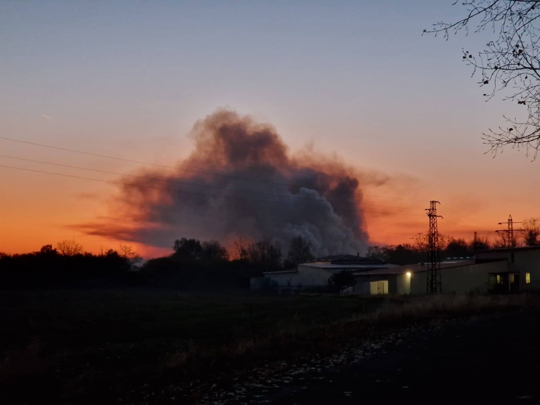 Не се потвърди първоначалната информация, че пожарът е на полигона за унищожаване на негодна продукция. Пламъците са много близо до южната ограда на оръжейницата.