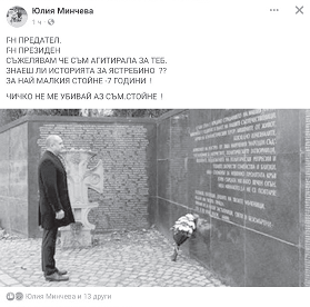 Ние като антифашисти винаги ще отстояваме историческата истина за това, че Народният съд е справедлив военен съд за осъждане на престъпниците, заради които България претърпява катастрофа по време на Втората световна война. Няма да допуснем неофашизмът и неонацизмът у нас да бъдат водещи в политическия ни живот.