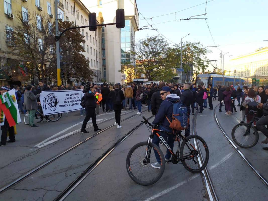 Протести срещу въвеждането на зелените сертификати имаше днес в няколко града на страната. В София за известно време демонстрацията спря движението по булевардите „Мария Луиза“ и „Александър Стамболийски“. Хората се насочиха към сградата на здравното министерство, кордон от полицаи охраняваше отпред. Полиция и жандармерия имаше през целия ден по възловите булеварди в центъра на града.