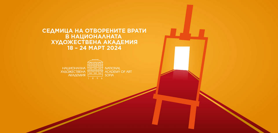 Националната художествена академия обявява Седмица на отворените врати от 18 до 24 март. Желаещите ще могат да посетят ателиетата на специалностите, където ще се запознаят с творческия процес и с изискванията за конкурсните изпити, възможностите и перспективите, които предоставя обучението в НХА. На разположение са библиотеката и музейната сбирка, ще може да се получи информация и за архивния фонд. Посетителите ще може да се срещнат със студенти-членове на Студентския съвет, да разговарят с експертите от Учебно-методичния отдел, да се запишат на организираните курсове и специализирани консултации. Специалностите на НХА в София са разположени на четири адреса: НХА, ул. "Шипка" 1 - "Живопис", "Стенопис", "Скулптура", "Графика", "Книга, илюстрация, печатна графика", "Плакат и визуална комуникация", "Изкуствознание", "Индустриален дизайн", "Моден дизайн"; НХА, бул. "Дондуков" 56 - "Индустриален дизайн"; НХА, бул. "Цариградско шосе" 73 - "Резба", "Сценография", "Метал", "Рекламен дизайн", "Дизайн за детската среда", "Реставрация"; НХА, бул. "Г. М. Димитров" 100 - "Текстил - изкуство и дизайн", "Керамика", "Дизайн на порцелан и стъкло". Пълната програма по дни и часове може да се намери в сайта на НХА.