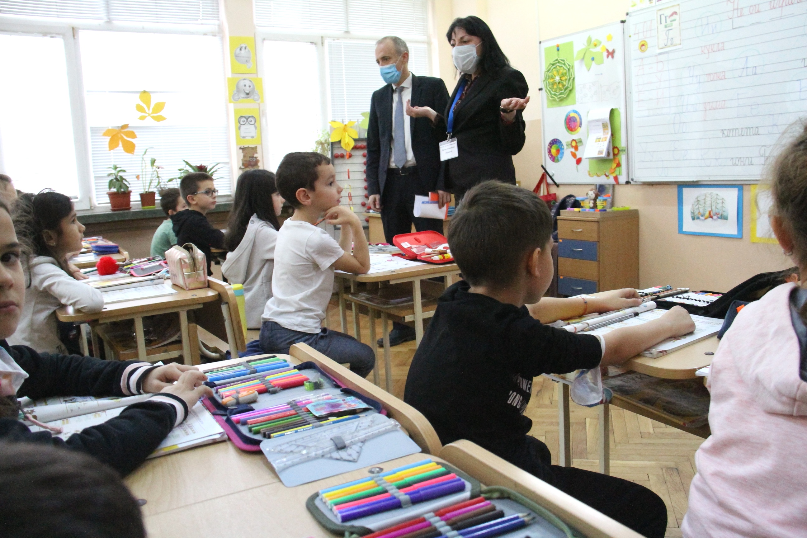 247 000 ученици от 1 до 4 клас се връщат към присъствена форма на обучение днес, 703 са подалите заявления за обучение в електронна среда, стана ясно от думите на Вълчев. Той обясни, че ако има учители, които се чувстват притеснени или са с хронични заболявания, отпуските им трябва да бъдат разрешавани незабавно.