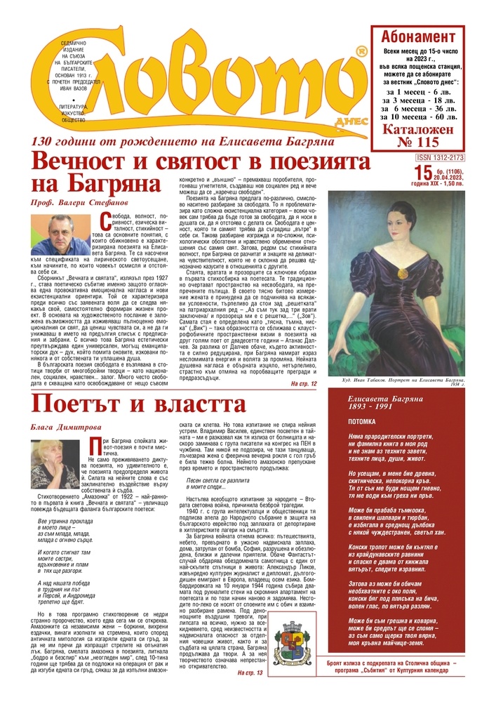 На 130-годишнината на Елисавета Багряна е посветен специален брой на в. "Словото днес".