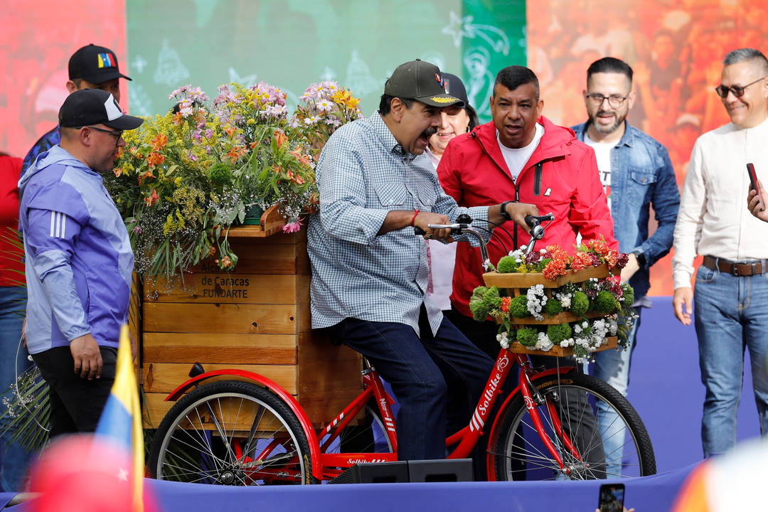 Президентът на Венецуела Николас Мадуро кара колело сред свои привърженици в столицата Каракас. Междувременно десетки протестираха срещу преизбирането му и настояха всички политически затворници да бъдат освободени