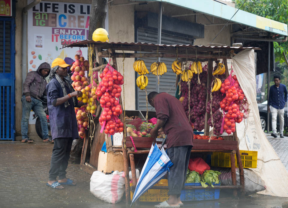 Жителите на Кения търсят различни варианти за препитание. Не са малко тези, които продават плодове и зеленчуци на импровизирани сергии