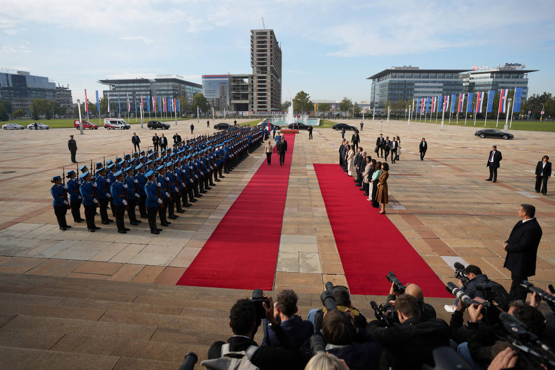Лидерката на Еврокомисията Урсула фон дер Лайен прави преглед на почетната гвардейска рота на площада пред двореца "Сърбия" в Белград заедно с президента Александър Вучич. След разговорите тя призова страната да ускори реформите по пътя към членство в ЕС, а Вучич определи ЕС като „стратегически приоритет“