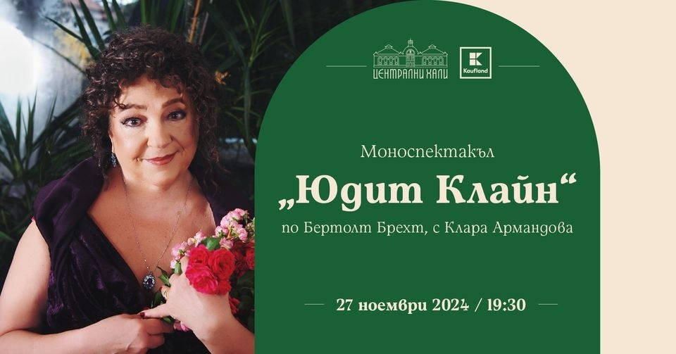 На 27 ноември (сряда) от 19,30 ч. "Сцена Централни хали" ще е домакин на моноспектакъла на Клара Армандова "Юдит Клайн" по текстове на Бертолт Брехт. Интригуващата театрална постановка ни връща в миналото, като предупреждeние за бъдещето. Действието в нея се развива в аристократичен дом в Берлин във времето на зараждащия се нацизъм, чиито жестоки пипала разрушават семейството между немец и еврейка. Юдит тръгва към неизвестността, защото чувството й за отговорност задължава сърцето да замълчи. Постановката е на режисьора Георги Новаков, а музикална среда е на Мишо Шишков.