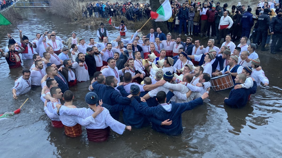 Макар и по-малобройно, мъжко хоро в ледените води на Тунджа в Калофер имаше и тази година навръх Йордановден. Кръстът, по традиция, бе подаден в ръцете на дете, което се хвана на хорото с баща си. Въпреки ограниченията заради коронавируса, десетки калоферци и гости на града дойдоха, за да проследят ритуала.