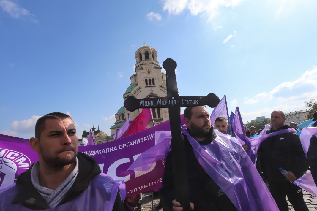 Пред множеството горовиха синдикалните лидери и работниците от „Мини Марица-Изток“. Няколко автобуса с хора от комлекса тръгнаха рано сутринта от Стара Загора, за да се включат в протеста.