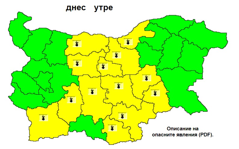 13 области в Централна Северна и Южна България са с жълт код за високи температури в петък.