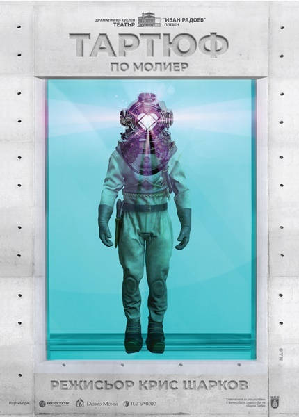 Зад мащабния проект стои доказалият се в годините тандем на режисьора Крис Шарков и сценографа Никола Тороманов-Фичо, подкрепен от авторската музика на композитора Асен Аврамов, мултимедията на Петко Танчев и превода и сценичен вариант на Димитър Кабаков. В ролята на Тартюф е Антъни Пенев. Участват Адриан Филипов - Оргон; Боряна Маноилова - гост, в ролята на Елмира; Валентин Василев - Валер; Делян Илиев - Клеант; Мариан Дулчев - Дамис; Надя Дердерян - Дорина; Теона Димова - Мариана. Автор на плаката е Николай Димитров.