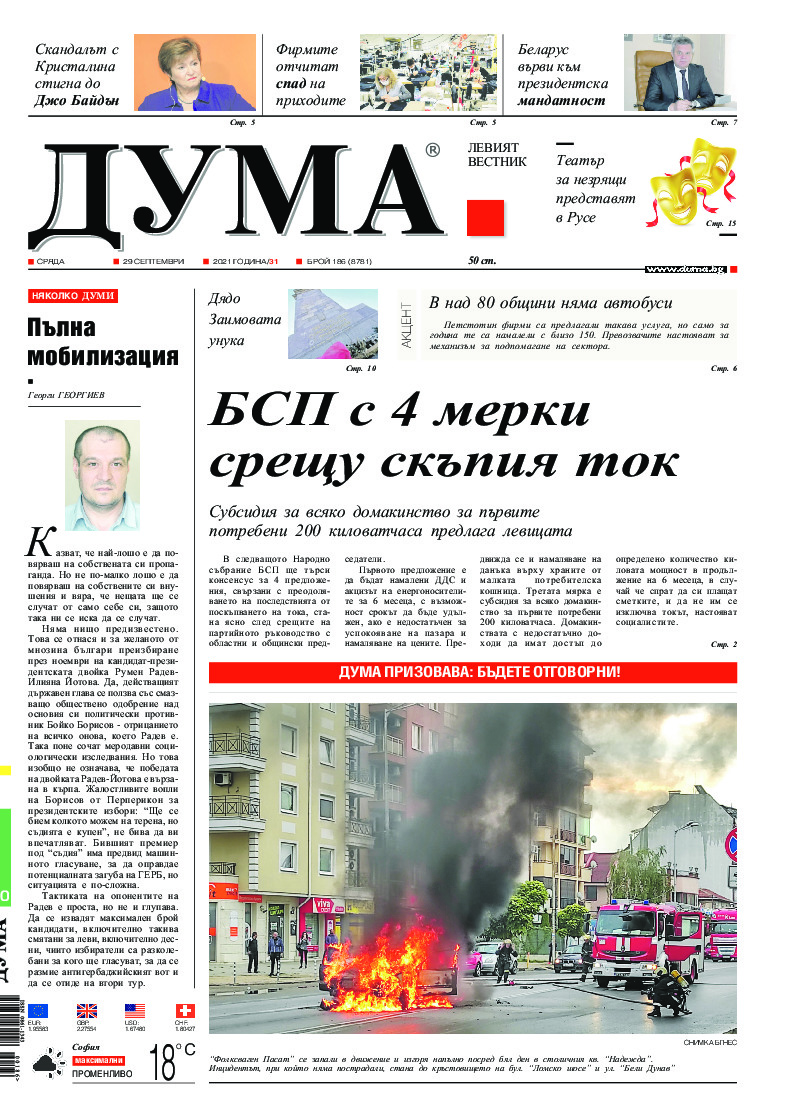 "Ново време" В дните, когато се навършва една година от първото заседание на 50-ия Конгрес на БСП (26-27.09.2020 г.), излезе от печат новият брой 7-8 за 2021 г. на сп. "Ново време" с водеща тема "За преучредяване на БСП и на левицата!". Тогава Конгресът реши: БСП тръгва на избори с Резолюция...