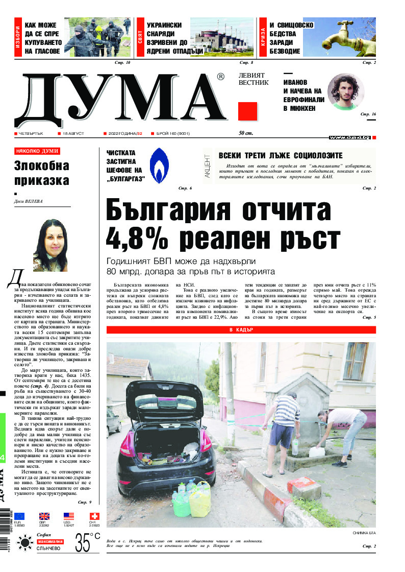 Деси ВЕЛЕВА Два показателя обикновено сочат за продължаващия упадък на България - изчезването на селата и закриването на училищата.Националният статистически институт всяка година обявява кое населено място ще бъде изтрито от картата на страната. Министерството на образованието и науката всеки 15...