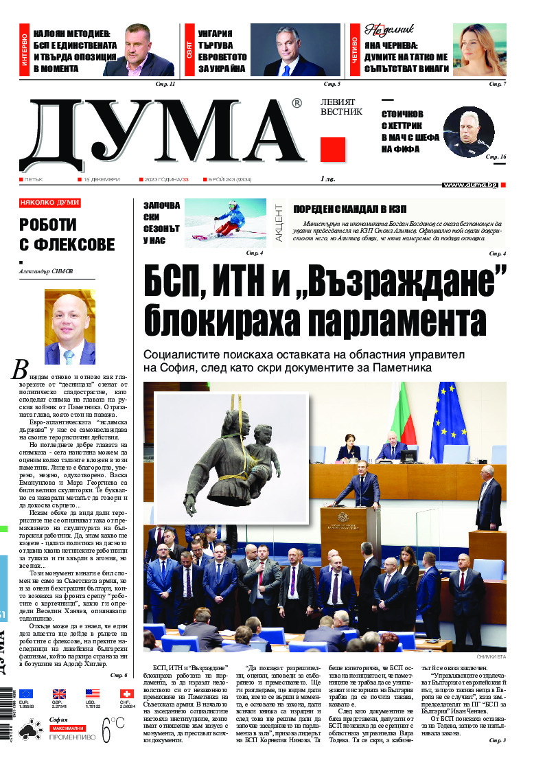 БСП поиска оставката на областния управител на София Вяра Тодева. Това стана след като народните представители от "БСП за България" не бяха допуснати да се срещнат с нея заради демонтажа на Паметника на Съветската армия. Депутатите бяха спрени на портала на областната управа от нейни служители, но в...