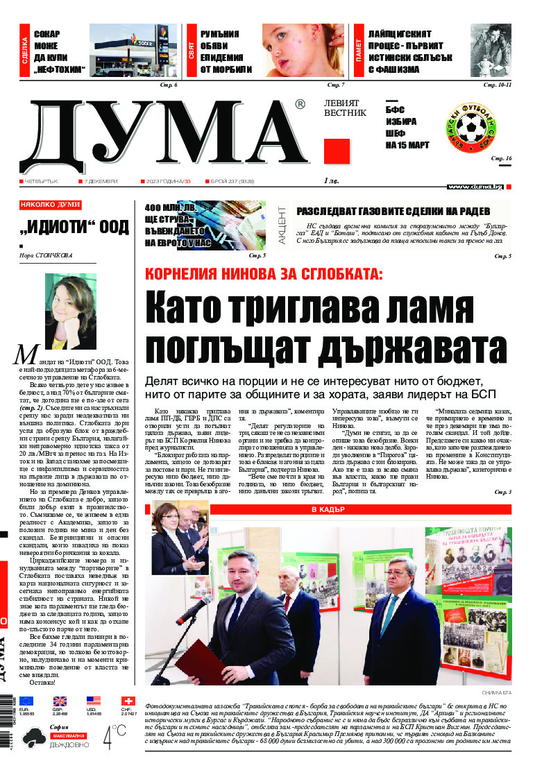 Мандат на "Идиоти" ООД. Това е най-подходящата метафора за 6-месечното управление на Сглобката.Всяко четвърто дете у нас живее в бедност, а над 70% от българите смятат, че догодина ще е по-зле от сега. Съседите ни са настръхнали срещу нас заради неадекватната ни външна политика. Сглобката дори успя ...