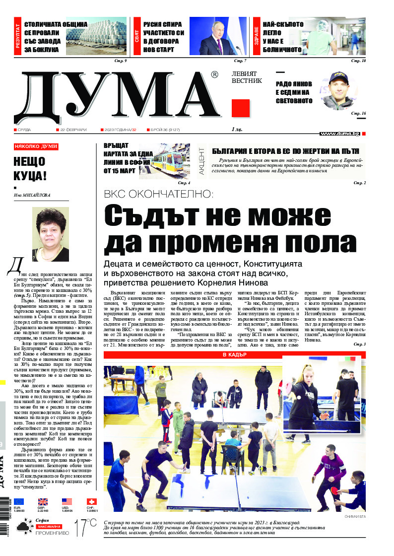Поздравления на ВКС за решението съдът да не може да допусне промяна на пола, написа лидерът на БСП Корнелия Нинова във Фейсбук. Тя се обърна към привържениците на Истанбулската конвенция и джендър идеологията с въпрос уважават ли върховенството на закона. "Чух много обвинения срещу БСП и мен...