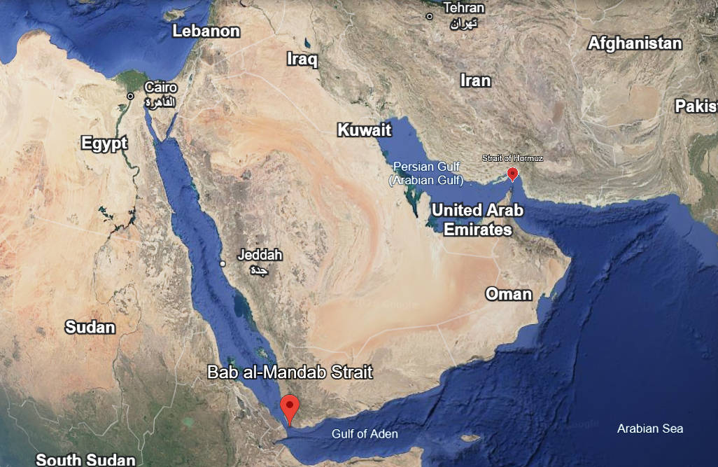 до Баб ел-Мандеб, 26-километров воден коридор между Йемен и Джибути, свързващ Индийския океан през Аденския залив с южната част на Червено море, би могла да прекъсне последния ключов маршрут за износ на енергоносители, достъпен за производителите на петрол от Персийския залив.