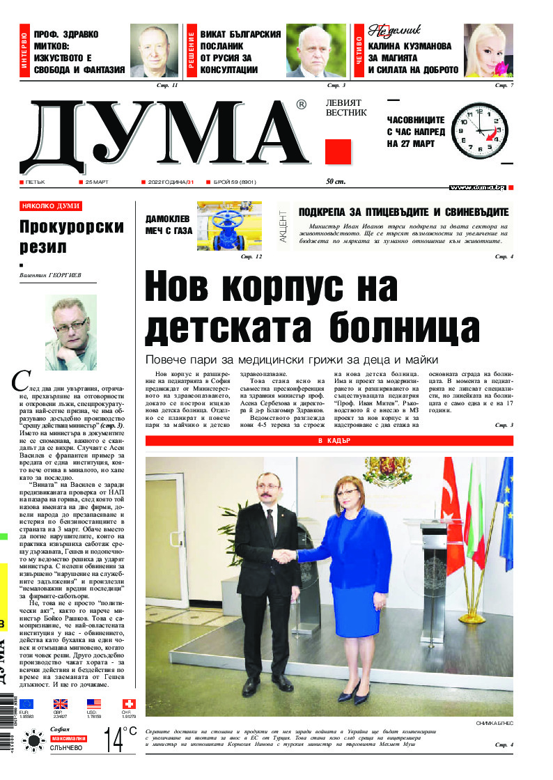 АБОНАМЕНТ за вестник „ДУМА“ за 2026 година. Можете да се абонирате в: „Български пощи“ АД до 15 декември 2025 г., „Доби прес“ ЕООД до 28 декември 2025 г., в редакцията на вестника до 20 декември 2025 г. Каталожен номер 6. Цени: 12 месеца - 149 € / 291,42 лв., 6 месеца - 75 € / 146,69 лв., 3 месеца - 40 € / 78,23 лв., 1 месец - 14 € / 27,38 лв. За повече информация тел. 02 9705 203 и 02 9705 216 отдел „Разпространение” на в-к ДУМА на ул. „Позитано” 20 А. E-mail: abonament@duma.bg АБОНАМЕНТ за вестник „ДУМА“ за 2026 година. Можете да се абонирате в: „Български пощи“ АД до 15 декември 2025 г., „Доби прес“ ЕООД до 28 декември 2025 г., в редакцията на вестника до 20 декември 2025 г. Каталожен номер 6. Цени: 12 месеца - 149 € / 291,42 лв., 6 месеца - 75 € / 146,69 лв., 3 месеца - 40 € / 78,23 лв., 1 месец - 14 € / 27,38 лв. За повече информация тел. 02 9705 203 и 02 9705 216 отдел „Разпространение” на в-к ДУМА на ул. „Позитано” 20 А. E-mail: abonament@duma.bg