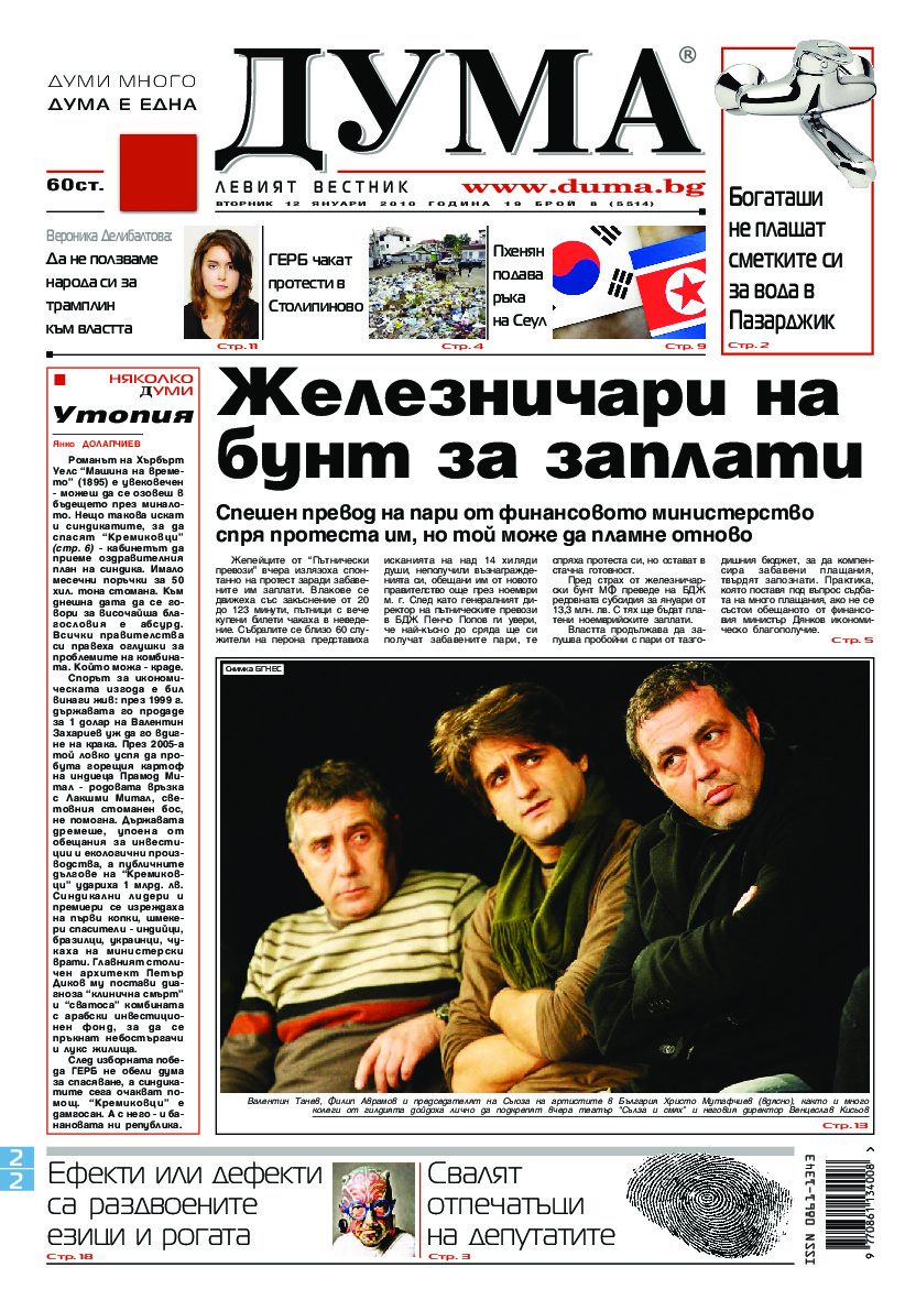 АБОНАМЕНТ за вестник „ДУМА“ за 2026 година. Можете да се абонирате в: „Български пощи“ АД до 15 декември 2025 г., „Доби прес“ ЕООД до 28 декември 2025 г., в редакцията на вестника до 20 декември 2025 г. Каталожен номер 6. Цени: 12 месеца - 149 € / 291,42 лв., 6 месеца - 75 € / 146,69 лв., 3 месеца - 40 € / 78,23 лв., 1 месец - 14 € / 27,38 лв. За повече информация тел. 02 9705 203 и 02 9705 216 отдел „Разпространение” на в-к ДУМА на ул. „Позитано” 20 А. E-mail: abonament@duma.bg АБОНАМЕНТ за вестник „ДУМА“ за 2026 година. Можете да се абонирате в: „Български пощи“ АД до 15 декември 2025 г., „Доби прес“ ЕООД до 28 декември 2025 г., в редакцията на вестника до 20 декември 2025 г. Каталожен номер 6. Цени: 12 месеца - 149 € / 291,42 лв., 6 месеца - 75 € / 146,69 лв., 3 месеца - 40 € / 78,23 лв., 1 месец - 14 € / 27,38 лв. За повече информация тел. 02 9705 203 и 02 9705 216 отдел „Разпространение” на в-к ДУМА на ул. „Позитано” 20 А. E-mail: abonament@duma.bg