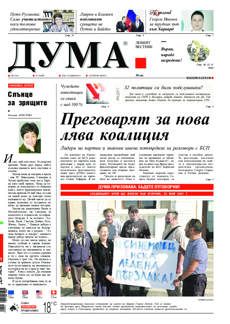 АБОНАМЕНТ за вестник „ДУМА“ за 2026 година. Можете да се абонирате в: „Български пощи“ АД до 15 декември 2025 г., „Доби прес“ ЕООД до 28 декември 2025 г., в редакцията на вестника до 20 декември 2025 г. Каталожен номер 6. Цени: 12 месеца - 149 € / 291,42 лв., 6 месеца - 75 € / 146,69 лв., 3 месеца - 40 € / 78,23 лв., 1 месец - 14 € / 27,38 лв. За повече информация тел. 02 9705 203 и 02 9705 216 отдел „Разпространение” на в-к ДУМА на ул. „Позитано” 20 А. E-mail: abonament@duma.bg АБОНАМЕНТ за вестник „ДУМА“ за 2026 година. Можете да се абонирате в: „Български пощи“ АД до 15 декември 2025 г., „Доби прес“ ЕООД до 28 декември 2025 г., в редакцията на вестника до 20 декември 2025 г. Каталожен номер 6. Цени: 12 месеца - 149 € / 291,42 лв., 6 месеца - 75 € / 146,69 лв., 3 месеца - 40 € / 78,23 лв., 1 месец - 14 € / 27,38 лв. За повече информация тел. 02 9705 203 и 02 9705 216 отдел „Разпространение” на в-к ДУМА на ул. „Позитано” 20 А. E-mail: abonament@duma.bg