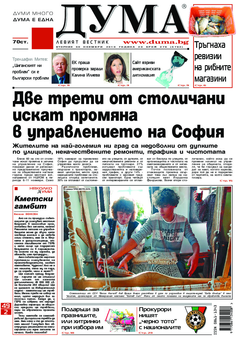 АБОНАМЕНТ за вестник „ДУМА“ за 2026 година. Можете да се абонирате в: „Български пощи“ АД до 15 декември 2025 г., „Доби прес“ ЕООД до 28 декември 2025 г., в редакцията на вестника до 20 декември 2025 г. Каталожен номер 6. Цени: 12 месеца - 149 € / 291,42 лв., 6 месеца - 75 € / 146,69 лв., 3 месеца - 40 € / 78,23 лв., 1 месец - 14 € / 27,38 лв. За повече информация тел. 02 9705 203 и 02 9705 216 отдел „Разпространение” на в-к ДУМА на ул. „Позитано” 20 А. E-mail: abonament@duma.bg АБОНАМЕНТ за вестник „ДУМА“ за 2026 година. Можете да се абонирате в: „Български пощи“ АД до 15 декември 2025 г., „Доби прес“ ЕООД до 28 декември 2025 г., в редакцията на вестника до 20 декември 2025 г. Каталожен номер 6. Цени: 12 месеца - 149 € / 291,42 лв., 6 месеца - 75 € / 146,69 лв., 3 месеца - 40 € / 78,23 лв., 1 месец - 14 € / 27,38 лв. За повече информация тел. 02 9705 203 и 02 9705 216 отдел „Разпространение” на в-к ДУМА на ул. „Позитано” 20 А. E-mail: abonament@duma.bg