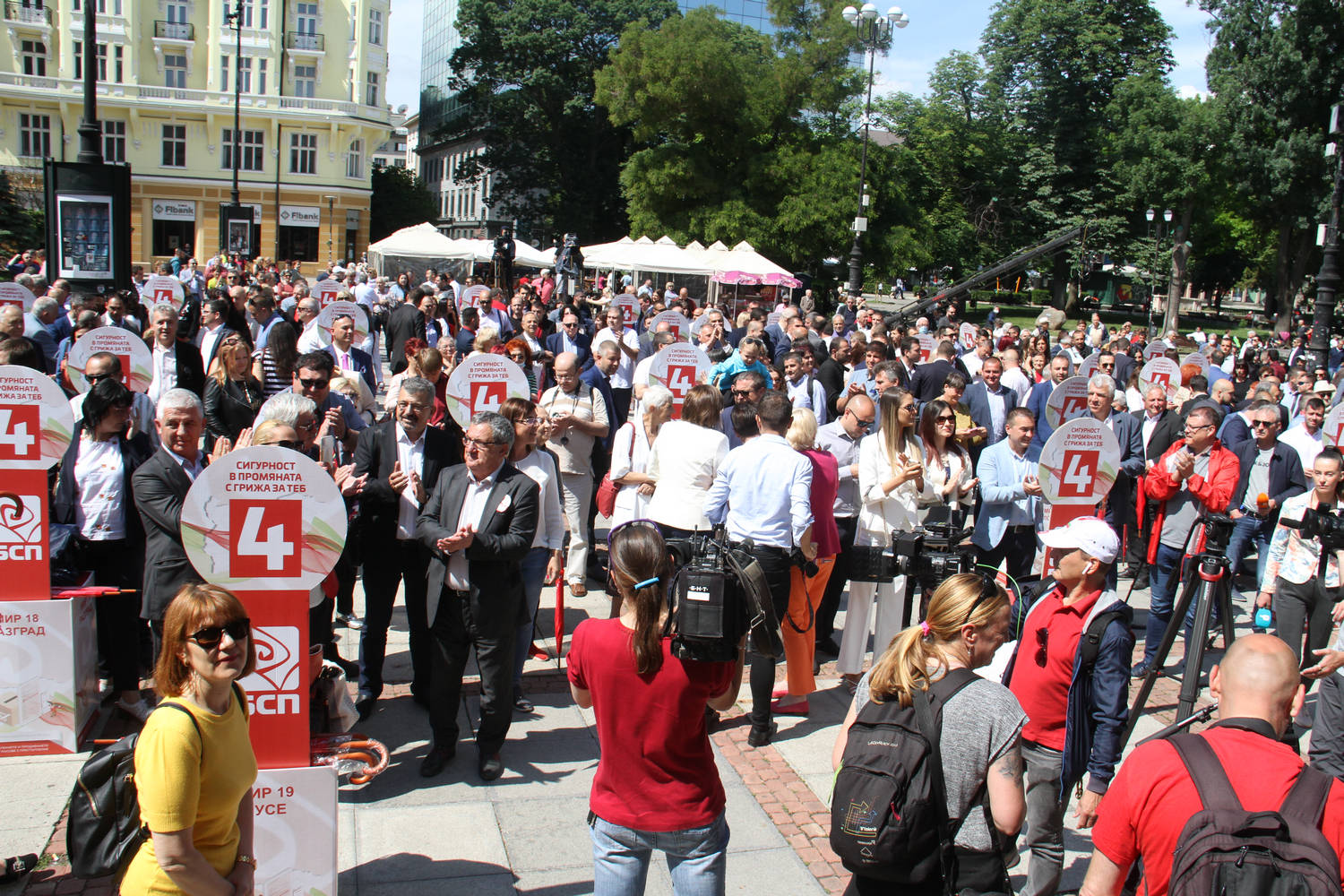 Българската социалистическа партия и коалиционните ѝ партньори тръгват към изборите под мотото "Сигурност в промяната с грижа за теб". Част от промяната е по-голямата защита на социалните права на българите, стана ясно при откриването на предизборната кампания пред Народния театър "Иван Вазов" в София. Червени чадъри с изборния номер 4 символизираха отварянето на "социалния чадър" над нуждаещите се. Всички водачи на листи и голяма част от кандидатите за народни представители от "БСП за България" бяха сред хората. Снимки Михаела Катеринска