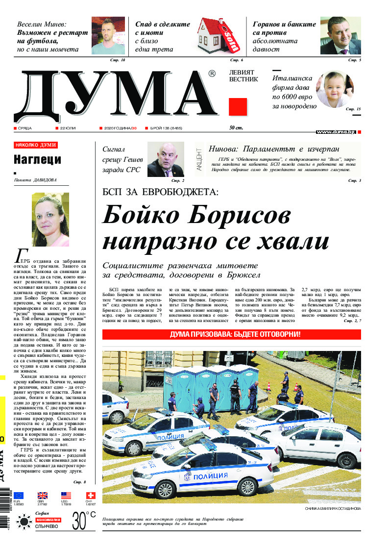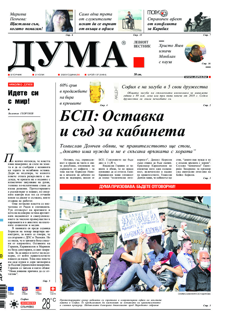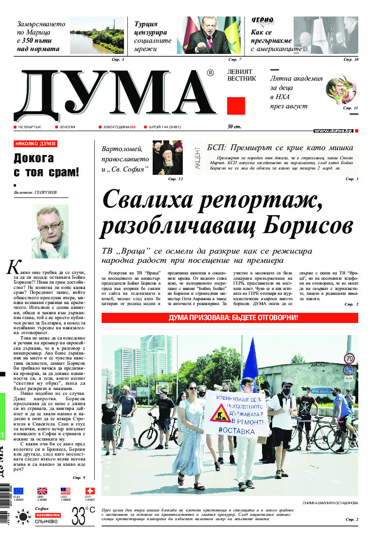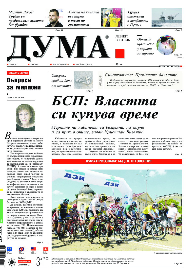 АБОНАМЕНТ за вестник „ДУМА“ за 2026 година. Можете да се абонирате в: „Български пощи“ АД до 15 декември 2025 г., „Доби прес“ ЕООД до 28 декември 2025 г., в редакцията на вестника до 20 декември 2025 г. Каталожен номер 6. Цени: 12 месеца - 149 € / 291,42 лв., 6 месеца - 75 € / 146,69 лв., 3 месеца - 40 € / 78,23 лв., 1 месец - 14 € / 27,38 лв. За повече информация тел. 02 9705 203 и 02 9705 216 отдел „Разпространение” на в-к ДУМА на ул. „Позитано” 20 А. E-mail: abonament@duma.bg АБОНАМЕНТ за вестник „ДУМА“ за 2026 година. Можете да се абонирате в: „Български пощи“ АД до 15 декември 2025 г., „Доби прес“ ЕООД до 28 декември 2025 г., в редакцията на вестника до 20 декември 2025 г. Каталожен номер 6. Цени: 12 месеца - 149 € / 291,42 лв., 6 месеца - 75 € / 146,69 лв., 3 месеца - 40 € / 78,23 лв., 1 месец - 14 € / 27,38 лв. За повече информация тел. 02 9705 203 и 02 9705 216 отдел „Разпространение” на в-к ДУМА на ул. „Позитано” 20 А. E-mail: abonament@duma.bg