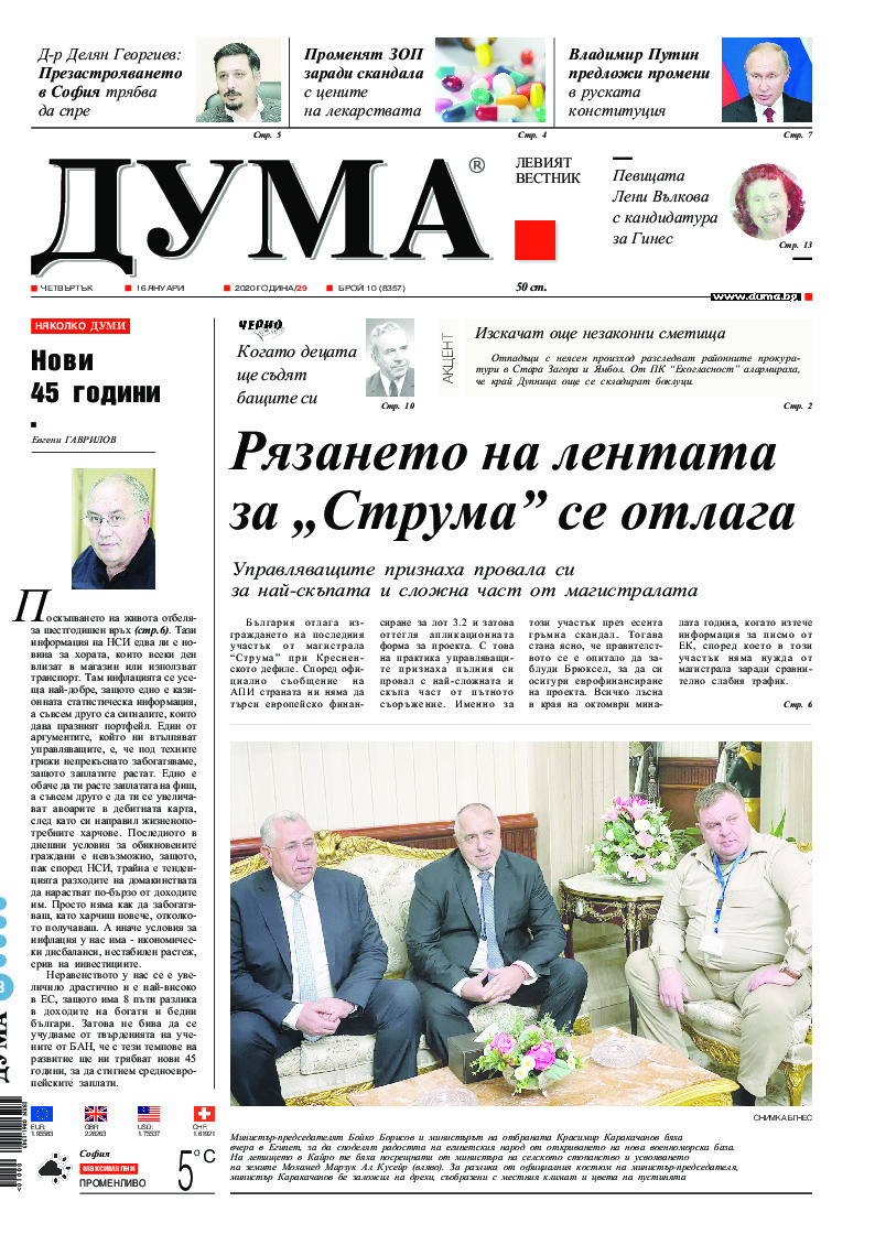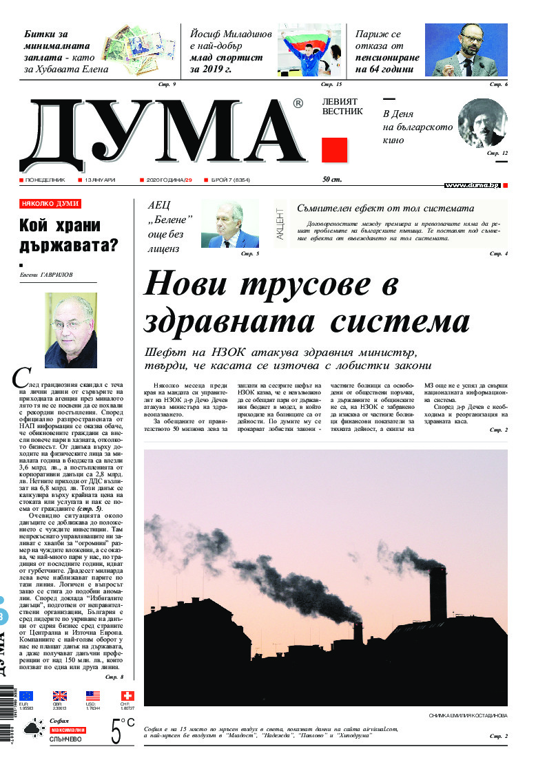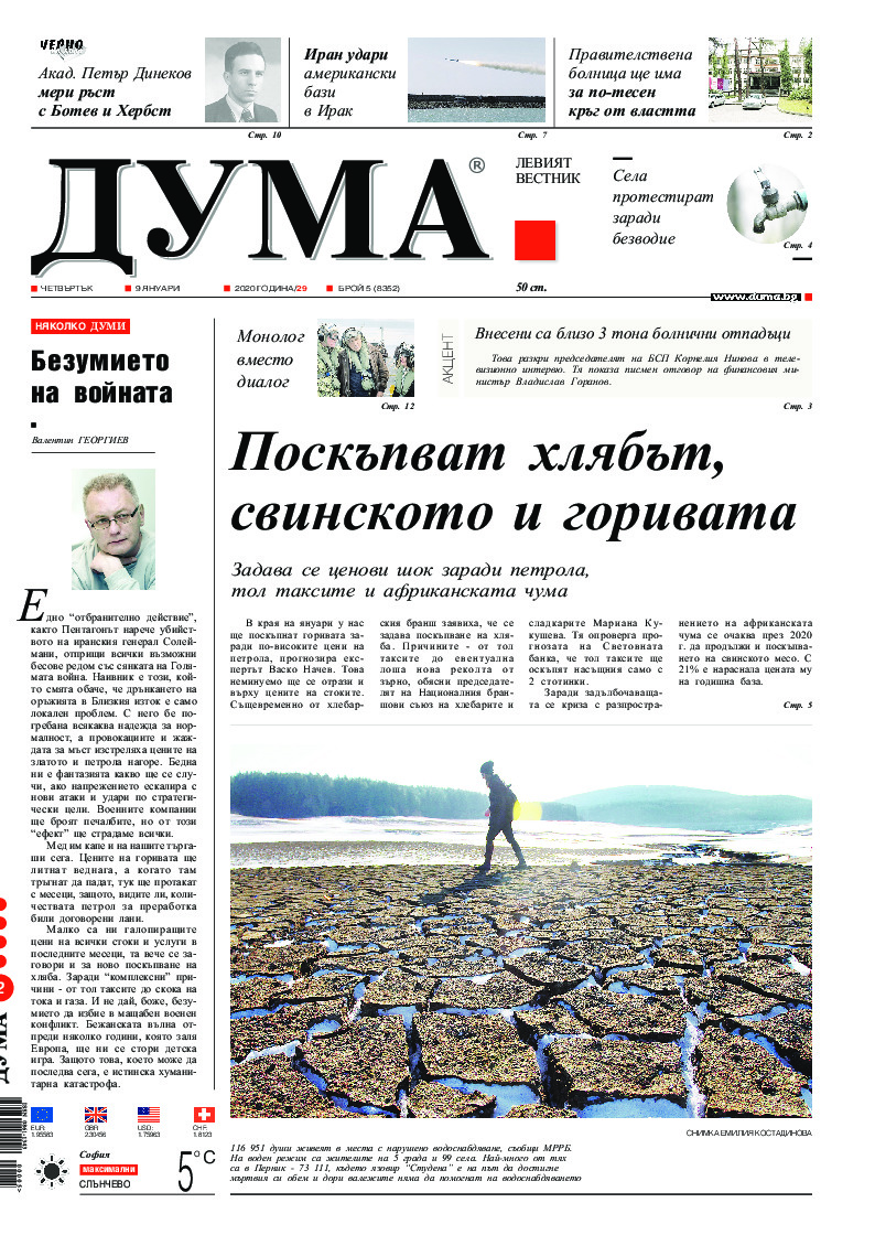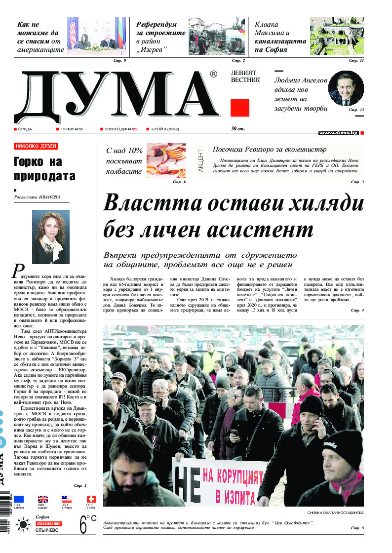 АБОНАМЕНТ за вестник „ДУМА“ за 2026 година. Можете да се абонирате в: „Български пощи“ АД до 15 декември 2025 г., „Доби прес“ ЕООД до 28 декември 2025 г., в редакцията на вестника до 20 декември 2025 г. Каталожен номер 6. Цени: 12 месеца - 149 € / 291,42 лв., 6 месеца - 75 € / 146,69 лв., 3 месеца - 40 € / 78,23 лв., 1 месец - 14 € / 27,38 лв. За повече информация тел. 02 9705 203 и 02 9705 216 отдел „Разпространение” на в-к ДУМА на ул. „Позитано” 20 А. E-mail: abonament@duma.bg АБОНАМЕНТ за вестник „ДУМА“ за 2026 година. Можете да се абонирате в: „Български пощи“ АД до 15 декември 2025 г., „Доби прес“ ЕООД до 28 декември 2025 г., в редакцията на вестника до 20 декември 2025 г. Каталожен номер 6. Цени: 12 месеца - 149 € / 291,42 лв., 6 месеца - 75 € / 146,69 лв., 3 месеца - 40 € / 78,23 лв., 1 месец - 14 € / 27,38 лв. За повече информация тел. 02 9705 203 и 02 9705 216 отдел „Разпространение” на в-к ДУМА на ул. „Позитано” 20 А. E-mail: abonament@duma.bg