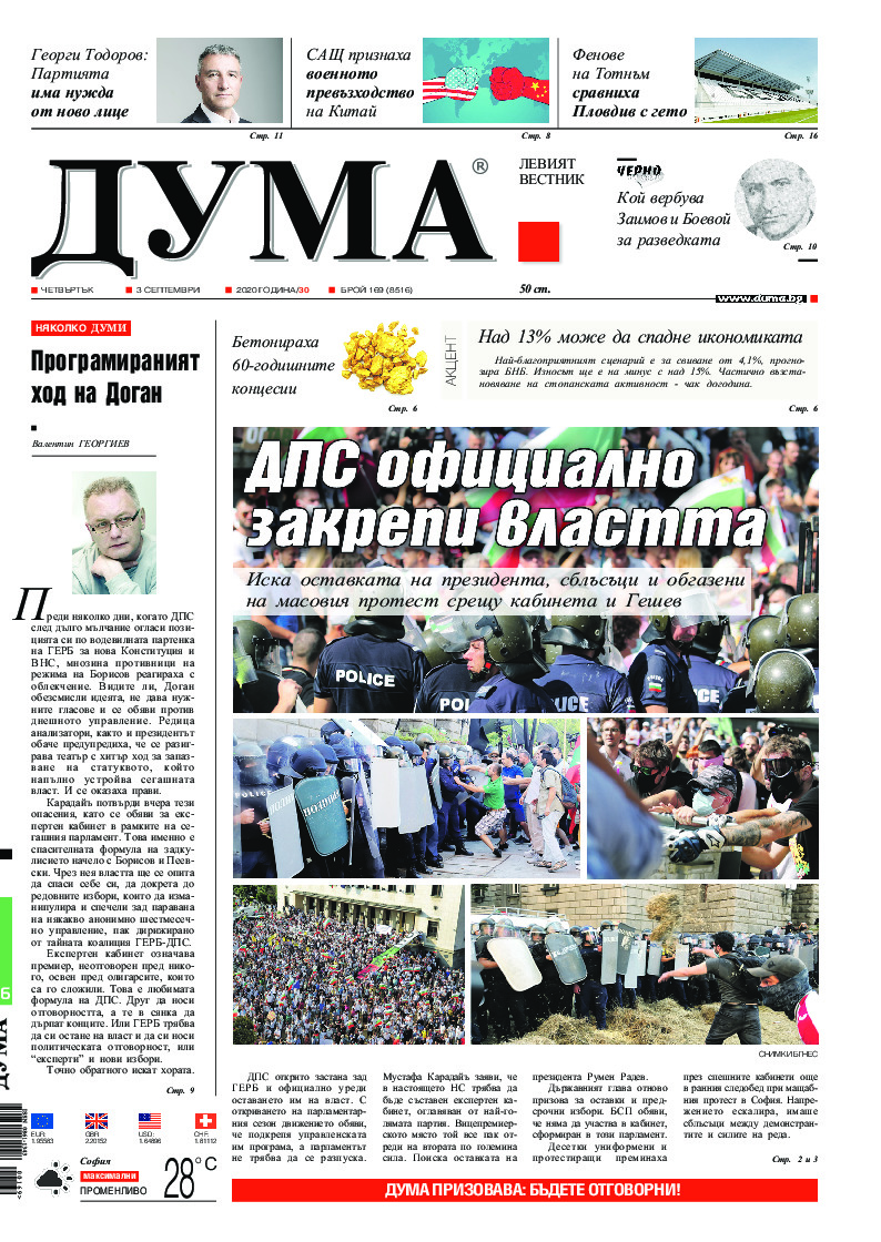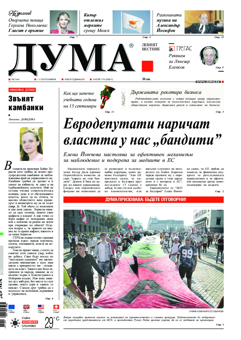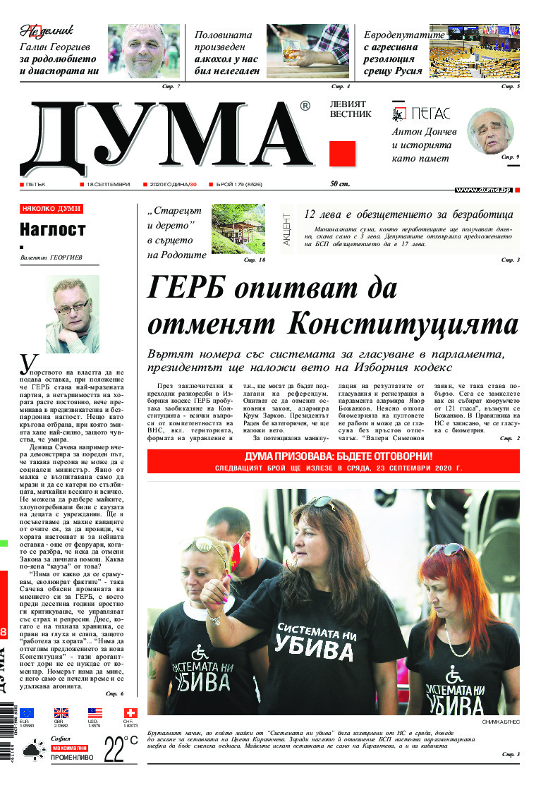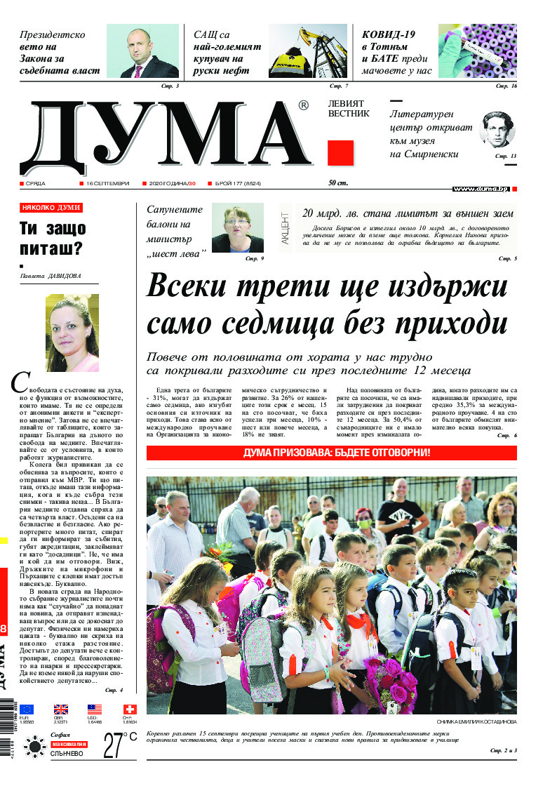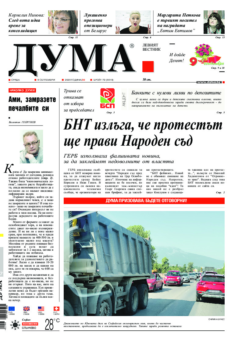 АБОНАМЕНТ за вестник „ДУМА“ за 2026 година. Можете да се абонирате в: „Български пощи“ АД до 15 декември 2025 г., „Доби прес“ ЕООД до 28 декември 2025 г., в редакцията на вестника до 20 декември 2025 г. Каталожен номер 6. Цени: 12 месеца - 149 € / 291,42 лв., 6 месеца - 75 € / 146,69 лв., 3 месеца - 40 € / 78,23 лв., 1 месец - 14 € / 27,38 лв. За повече информация тел. 02 9705 203 и 02 9705 216 отдел „Разпространение” на в-к ДУМА на ул. „Позитано” 20 А. E-mail: abonament@duma.bg АБОНАМЕНТ за вестник „ДУМА“ за 2026 година. Можете да се абонирате в: „Български пощи“ АД до 15 декември 2025 г., „Доби прес“ ЕООД до 28 декември 2025 г., в редакцията на вестника до 20 декември 2025 г. Каталожен номер 6. Цени: 12 месеца - 149 € / 291,42 лв., 6 месеца - 75 € / 146,69 лв., 3 месеца - 40 € / 78,23 лв., 1 месец - 14 € / 27,38 лв. За повече информация тел. 02 9705 203 и 02 9705 216 отдел „Разпространение” на в-к ДУМА на ул. „Позитано” 20 А. E-mail: abonament@duma.bg