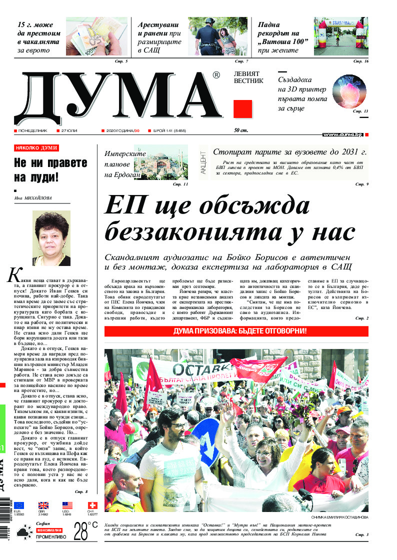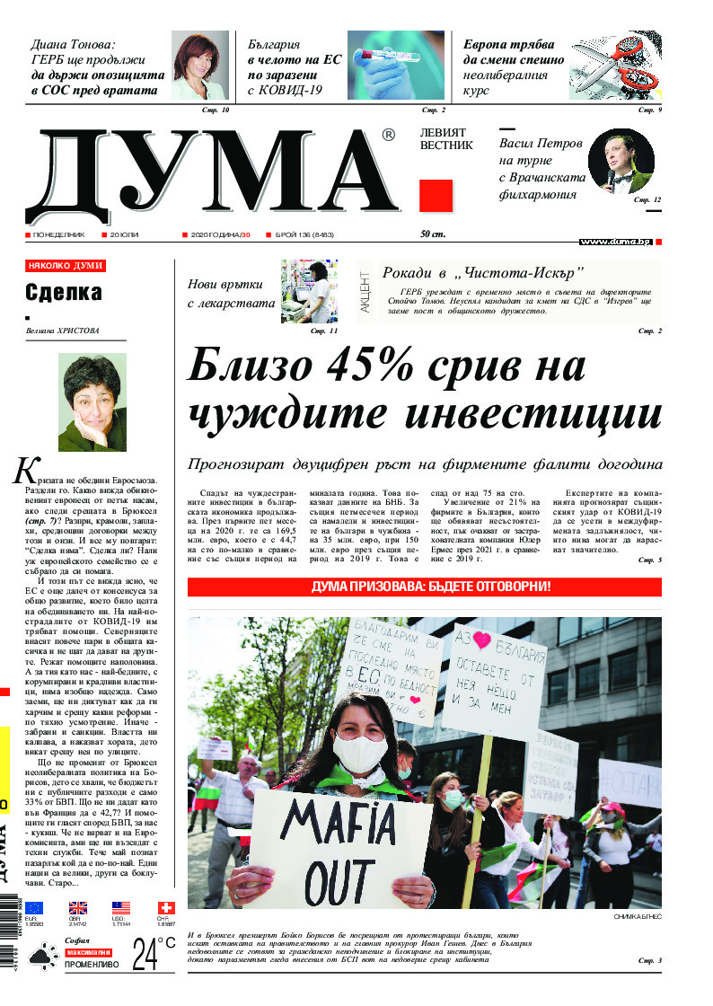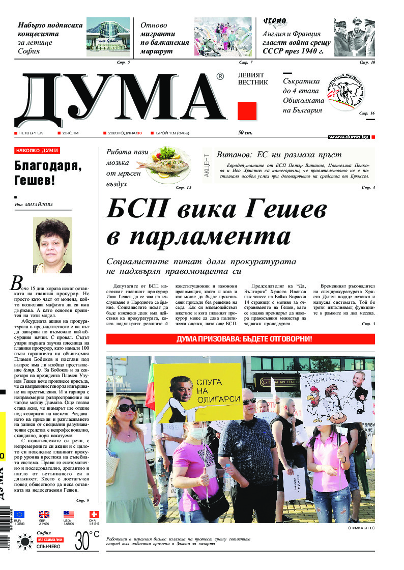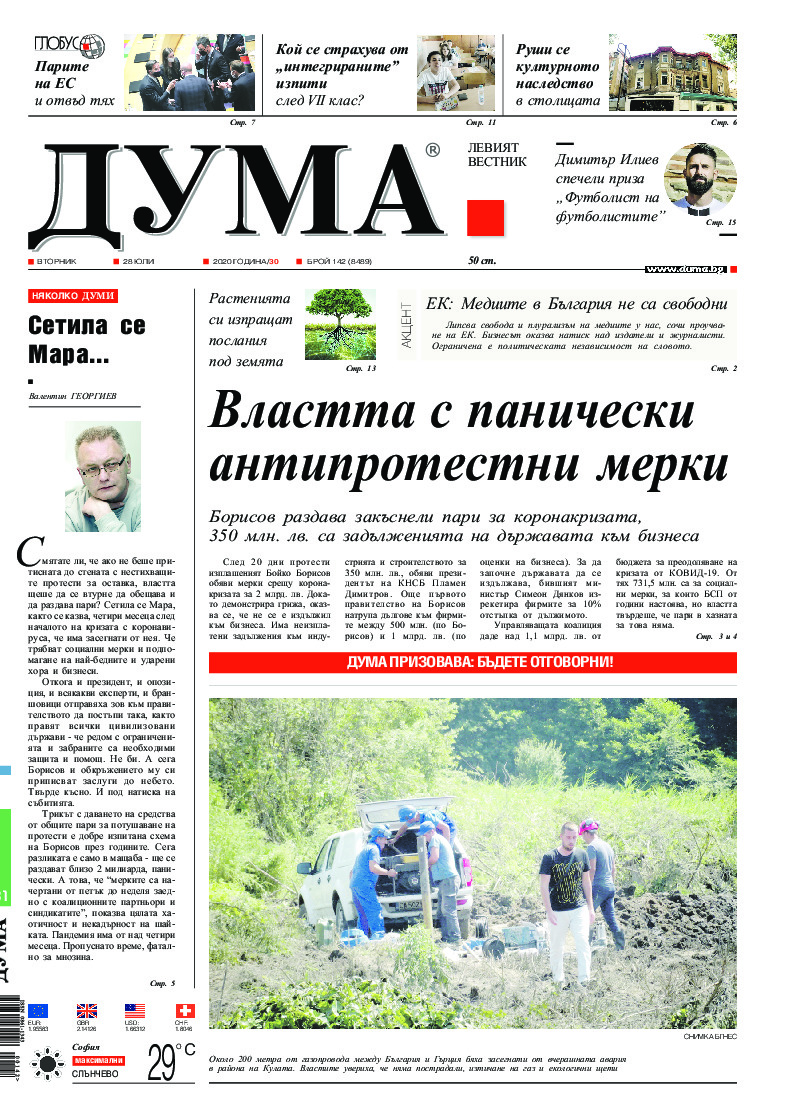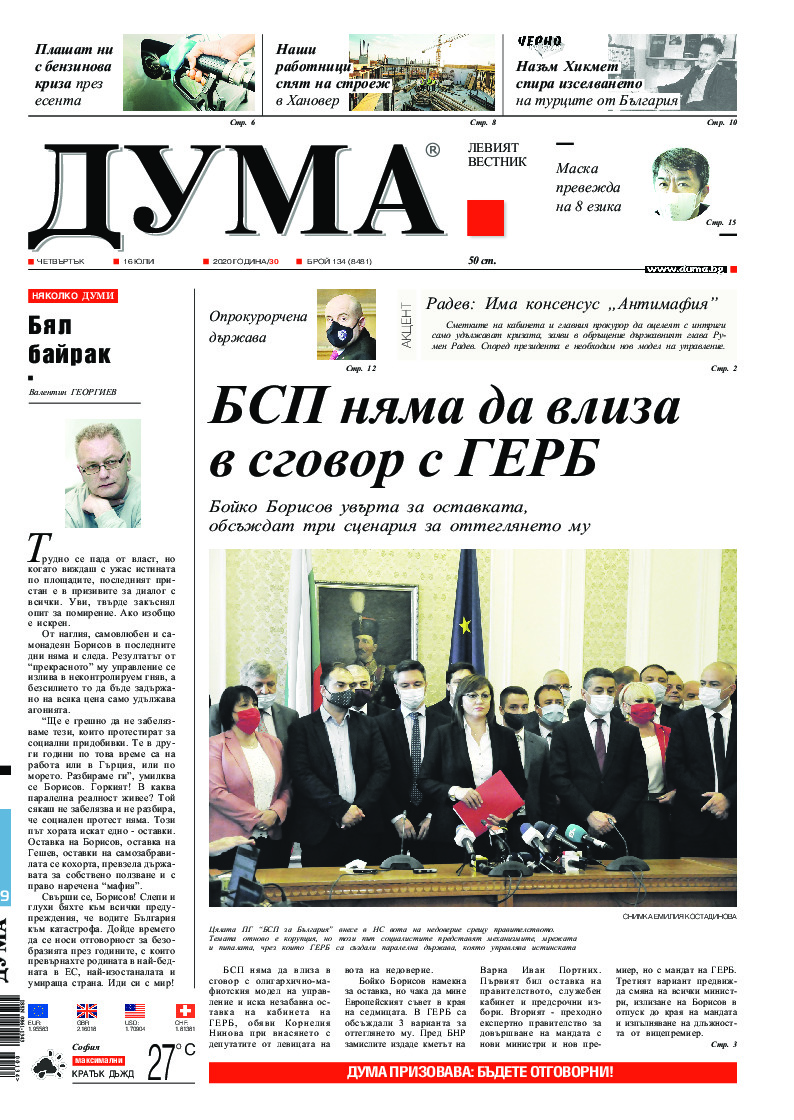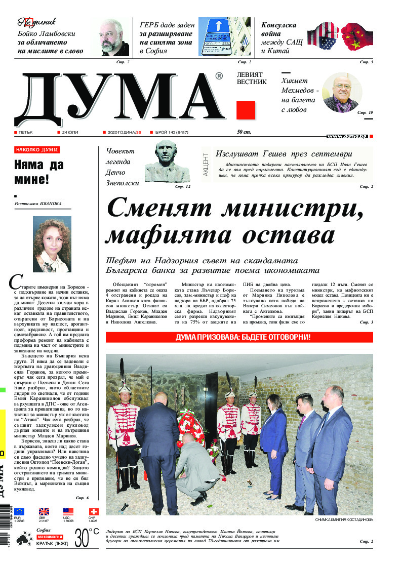 АБОНАМЕНТ за вестник „ДУМА“ за 2026 година. Можете да се абонирате в: „Български пощи“ АД до 15 декември 2025 г., „Доби прес“ ЕООД до 28 декември 2025 г., в редакцията на вестника до 20 декември 2025 г. Каталожен номер 6. Цени: 12 месеца - 149 € / 291,42 лв., 6 месеца - 75 € / 146,69 лв., 3 месеца - 40 € / 78,23 лв., 1 месец - 14 € / 27,38 лв. За повече информация тел. 02 9705 203 и 02 9705 216 отдел „Разпространение” на в-к ДУМА на ул. „Позитано” 20 А. E-mail: abonament@duma.bg АБОНАМЕНТ за вестник „ДУМА“ за 2026 година. Можете да се абонирате в: „Български пощи“ АД до 15 декември 2025 г., „Доби прес“ ЕООД до 28 декември 2025 г., в редакцията на вестника до 20 декември 2025 г. Каталожен номер 6. Цени: 12 месеца - 149 € / 291,42 лв., 6 месеца - 75 € / 146,69 лв., 3 месеца - 40 € / 78,23 лв., 1 месец - 14 € / 27,38 лв. За повече информация тел. 02 9705 203 и 02 9705 216 отдел „Разпространение” на в-к ДУМА на ул. „Позитано” 20 А. E-mail: abonament@duma.bg