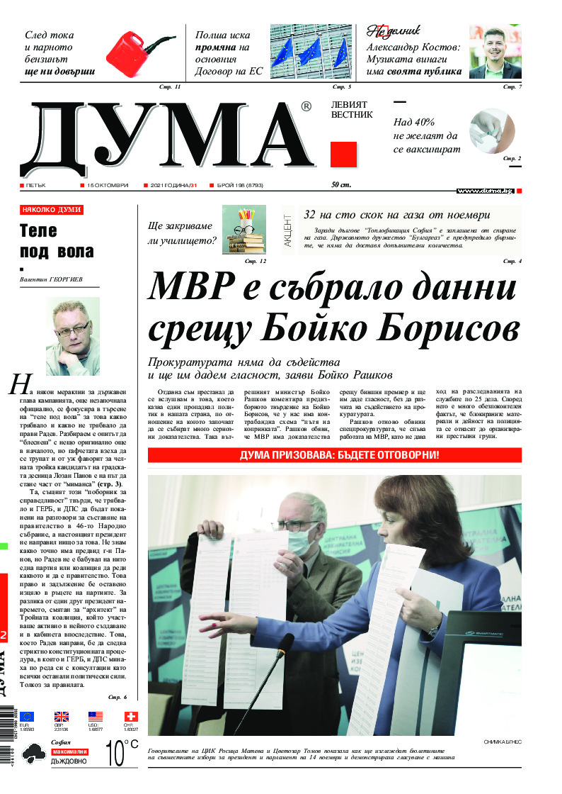 АБОНАМЕНТ за вестник „ДУМА“ за 2026 година. Можете да се абонирате в: „Български пощи“ АД до 15 декември 2025 г., „Доби прес“ ЕООД до 28 декември 2025 г., в редакцията на вестника до 20 декември 2025 г. Каталожен номер 6. Цени: 12 месеца - 149 € / 291,42 лв., 6 месеца - 75 € / 146,69 лв., 3 месеца - 40 € / 78,23 лв., 1 месец - 14 € / 27,38 лв. За повече информация тел. 02 9705 203 и 02 9705 216 отдел „Разпространение” на в-к ДУМА на ул. „Позитано” 20 А. E-mail: abonament@duma.bg АБОНАМЕНТ за вестник „ДУМА“ за 2026 година. Можете да се абонирате в: „Български пощи“ АД до 15 декември 2025 г., „Доби прес“ ЕООД до 28 декември 2025 г., в редакцията на вестника до 20 декември 2025 г. Каталожен номер 6. Цени: 12 месеца - 149 € / 291,42 лв., 6 месеца - 75 € / 146,69 лв., 3 месеца - 40 € / 78,23 лв., 1 месец - 14 € / 27,38 лв. За повече информация тел. 02 9705 203 и 02 9705 216 отдел „Разпространение” на в-к ДУМА на ул. „Позитано” 20 А. E-mail: abonament@duma.bg