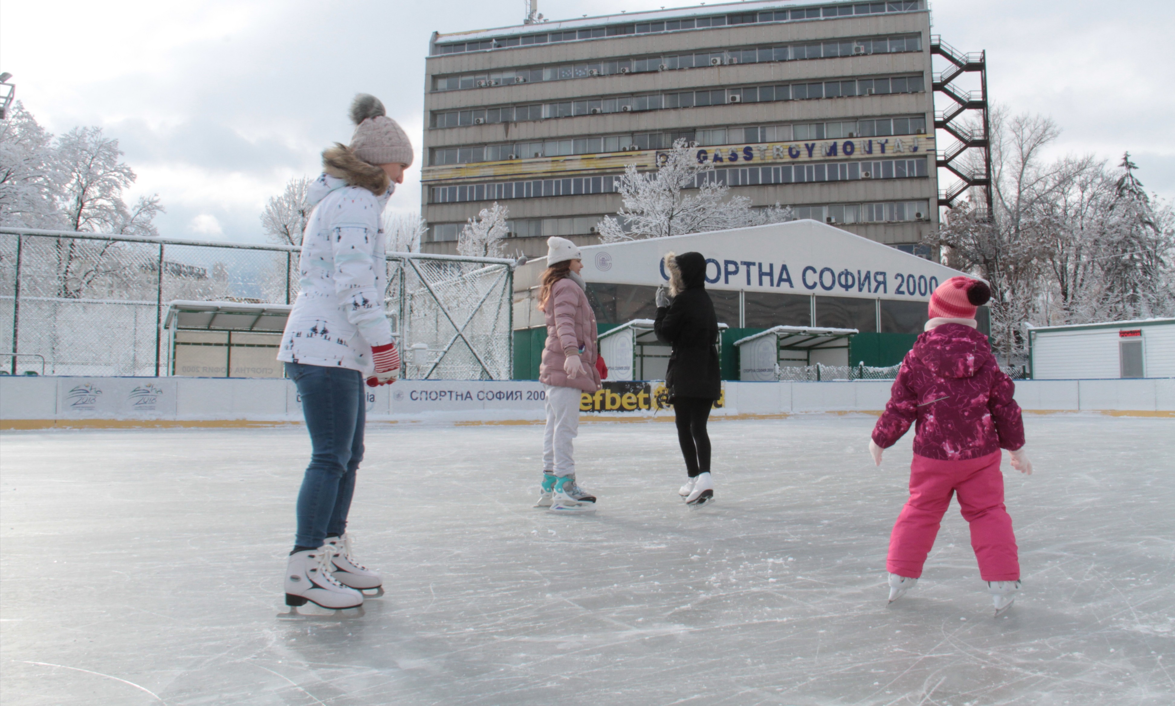 Вече работи ледената пързалка в комплекса "Спортна София" в столичния парк Възраждане. Най-нетърпеливите обуха кънките още от сутринта.