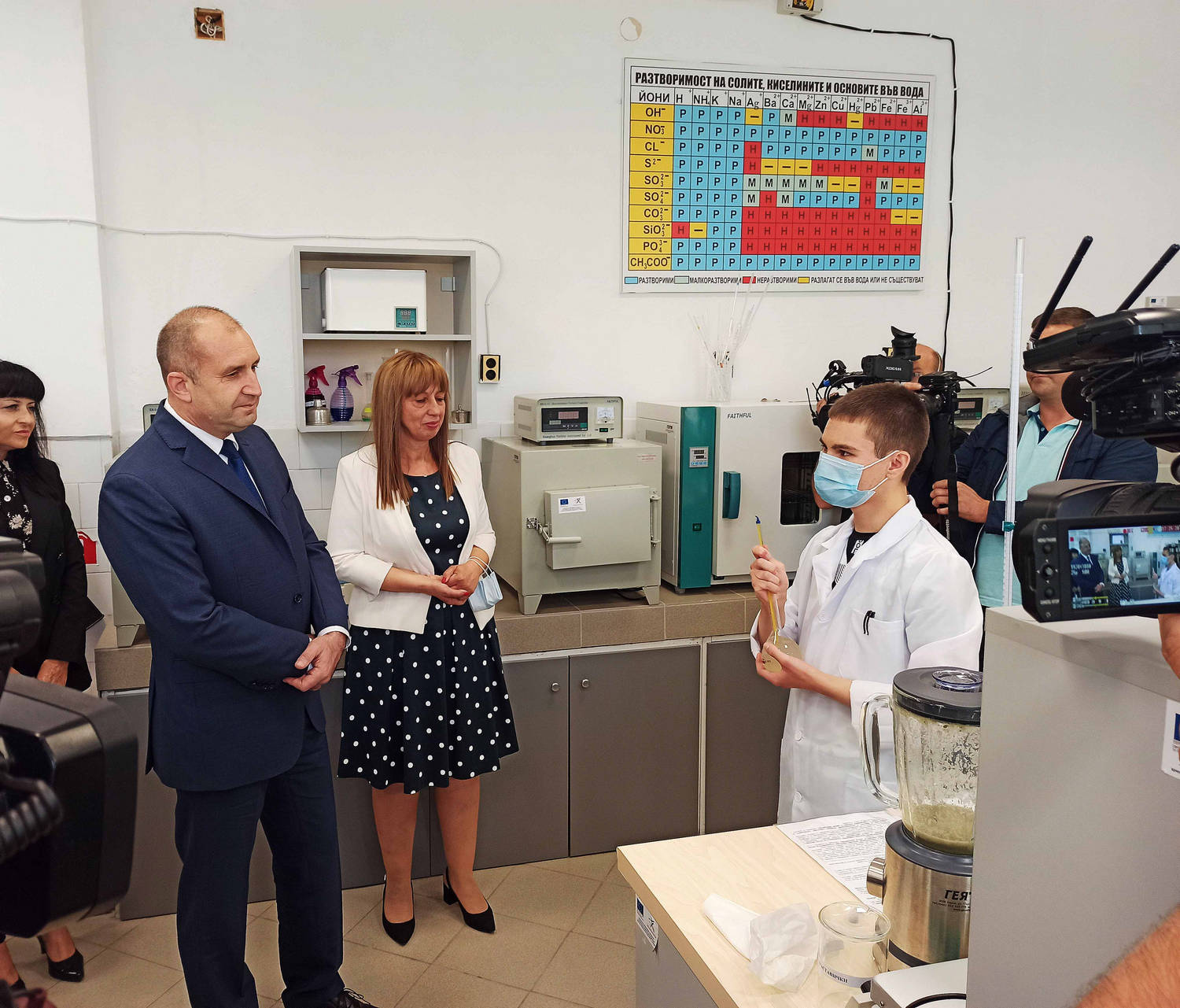 От Пловдив президентът Румен Радев призова партиите да търсят обединение около ценности и приоритети и да не бързат с взаимните нападки, "защото ще се срещнат в парламента и ще бъдат изправени пред най-трудната и важна задача за България - да съставят редовно правителство". Държавният глава посети Професионалната гимназия по хранителни технологии и техника и Центъра по технологии към ПУ "Паисий Хилендарски". Снимки - Прессекретариат на президента