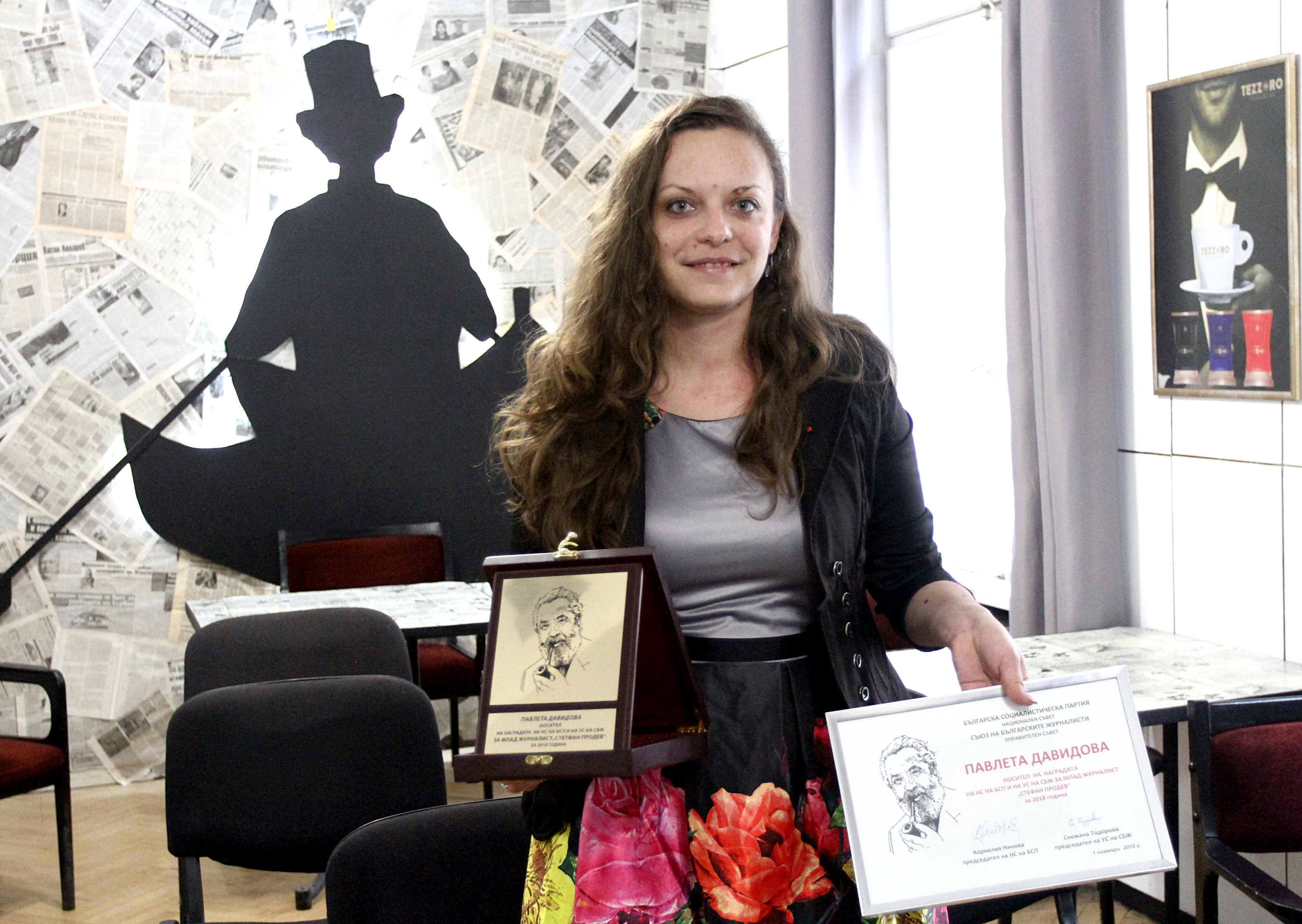 Първият носител на наградата за млад журналист "Стефан Продев" бе връчена на Павлета Давидова, завеждащ отдел "България" във в. Дума